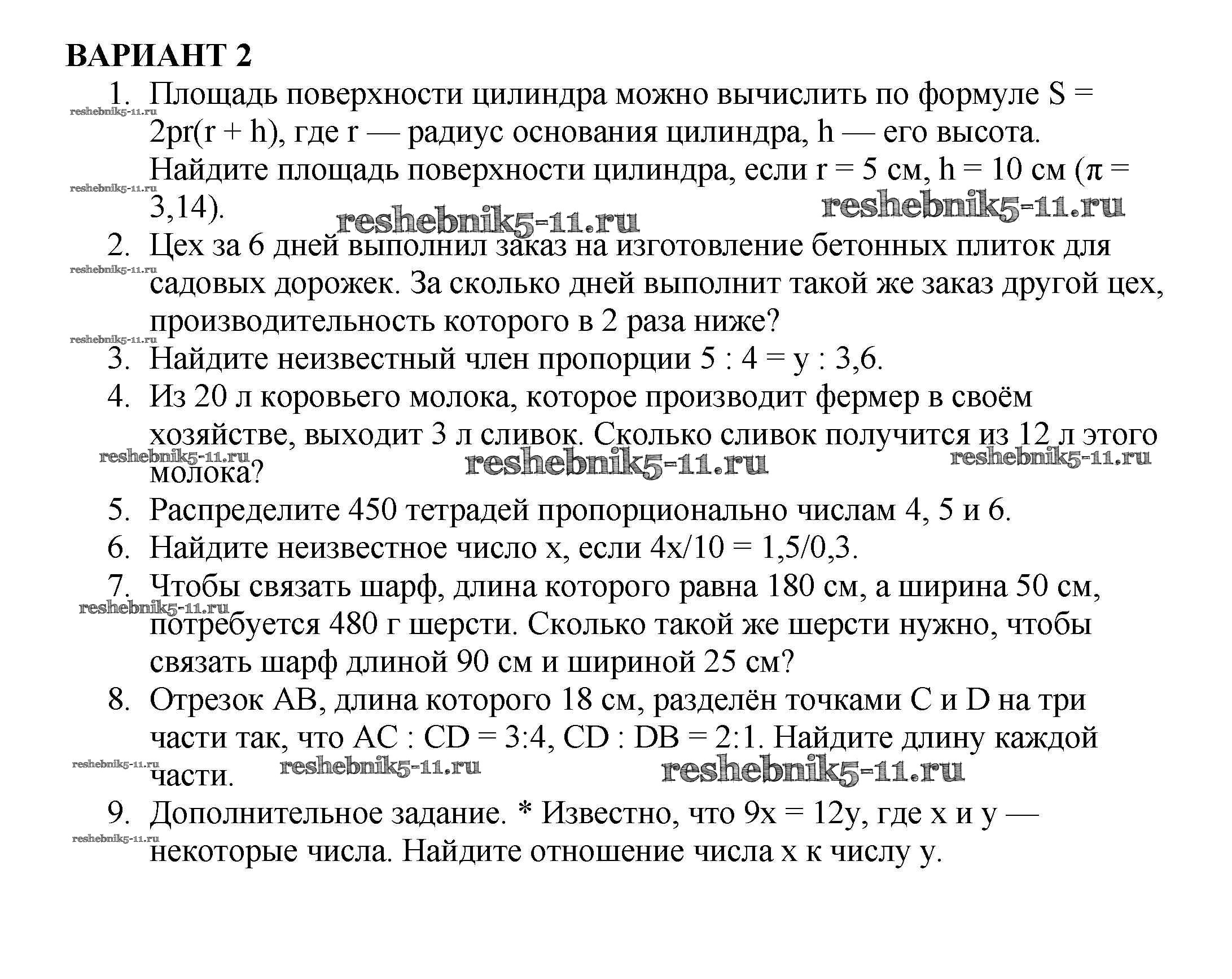 Готовая домашняя работа с ответами по Алгебре за 7 класс Кузнецова, Минаева, Рослова, Суворова Контрольные работы Просвещение 2018 ФГОС - Контрольная работа №2. Прямая и обратная пропорциональность Вариант 2