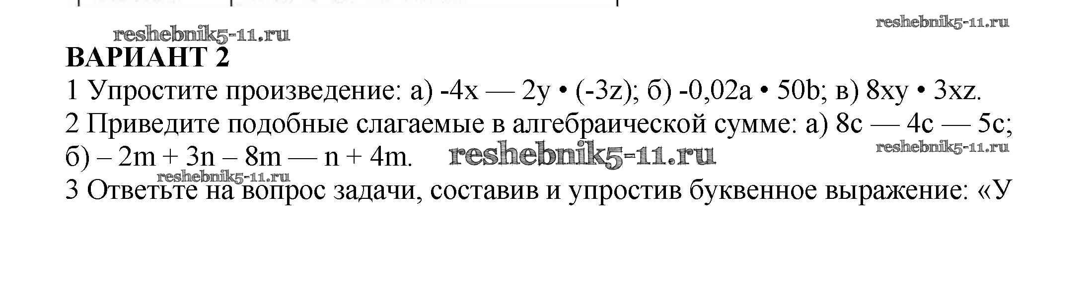 Готовая домашняя работа с ответами по Алгебре за 7 класс Кузнецова, Минаева, Рослова, Суворова Контрольные работы Просвещение 2018 ФГОС - Контрольная работа №3. Введение в алгебру Вариант 2