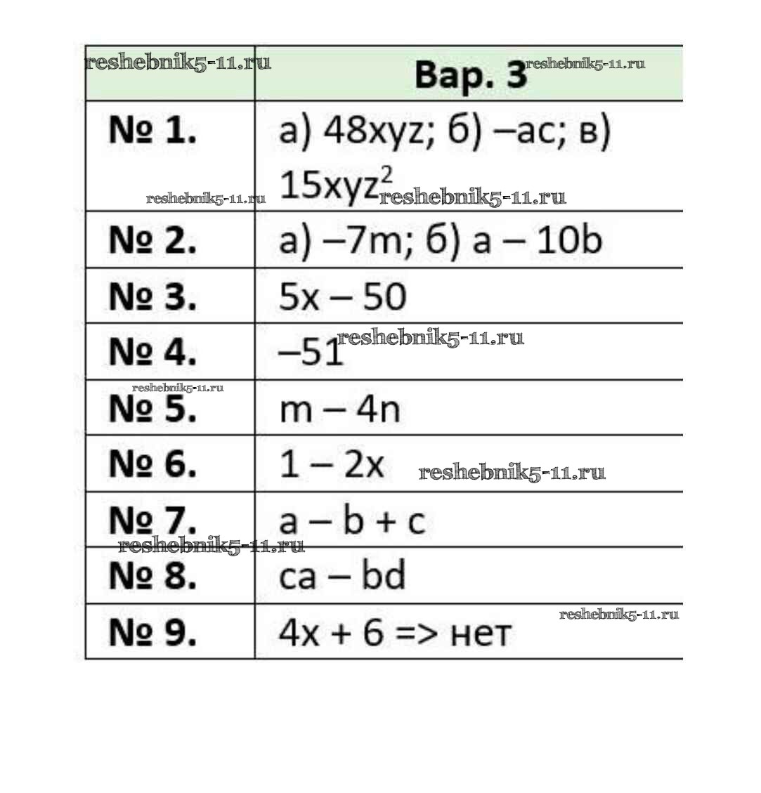 Готовая домашняя работа с ответами по Алгебре за 7 класс Кузнецова, Минаева, Рослова, Суворова Контрольные работы Просвещение 2018 ФГОС - Контрольная работа №3. Введение в алгебру Вариант 3