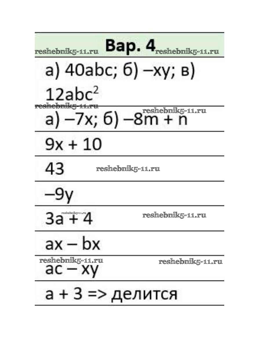 Готовая домашняя работа с ответами по Алгебре за 7 класс Кузнецова, Минаева, Рослова, Суворова Контрольные работы Просвещение 2018 ФГОС - Контрольная работа №3. Введение в алгебру Вариант 4