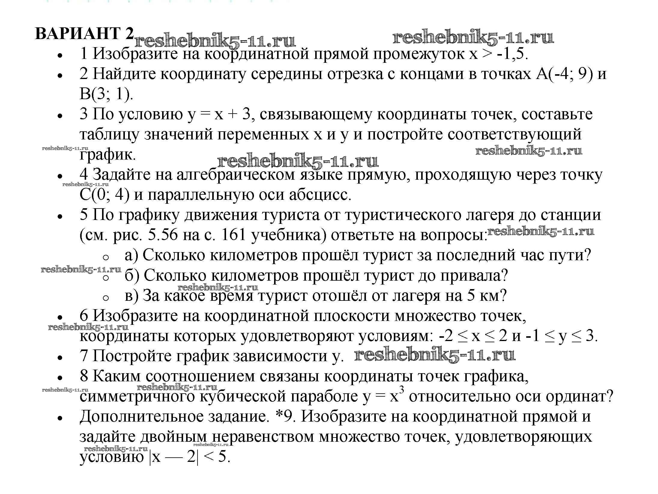 Готовая домашняя работа с ответами по Алгебре за 7 класс Кузнецова, Минаева, Рослова, Суворова Контрольные работы Просвещение 2018 ФГОС - Контрольная работа №5. Координаты и графики Вариант 2