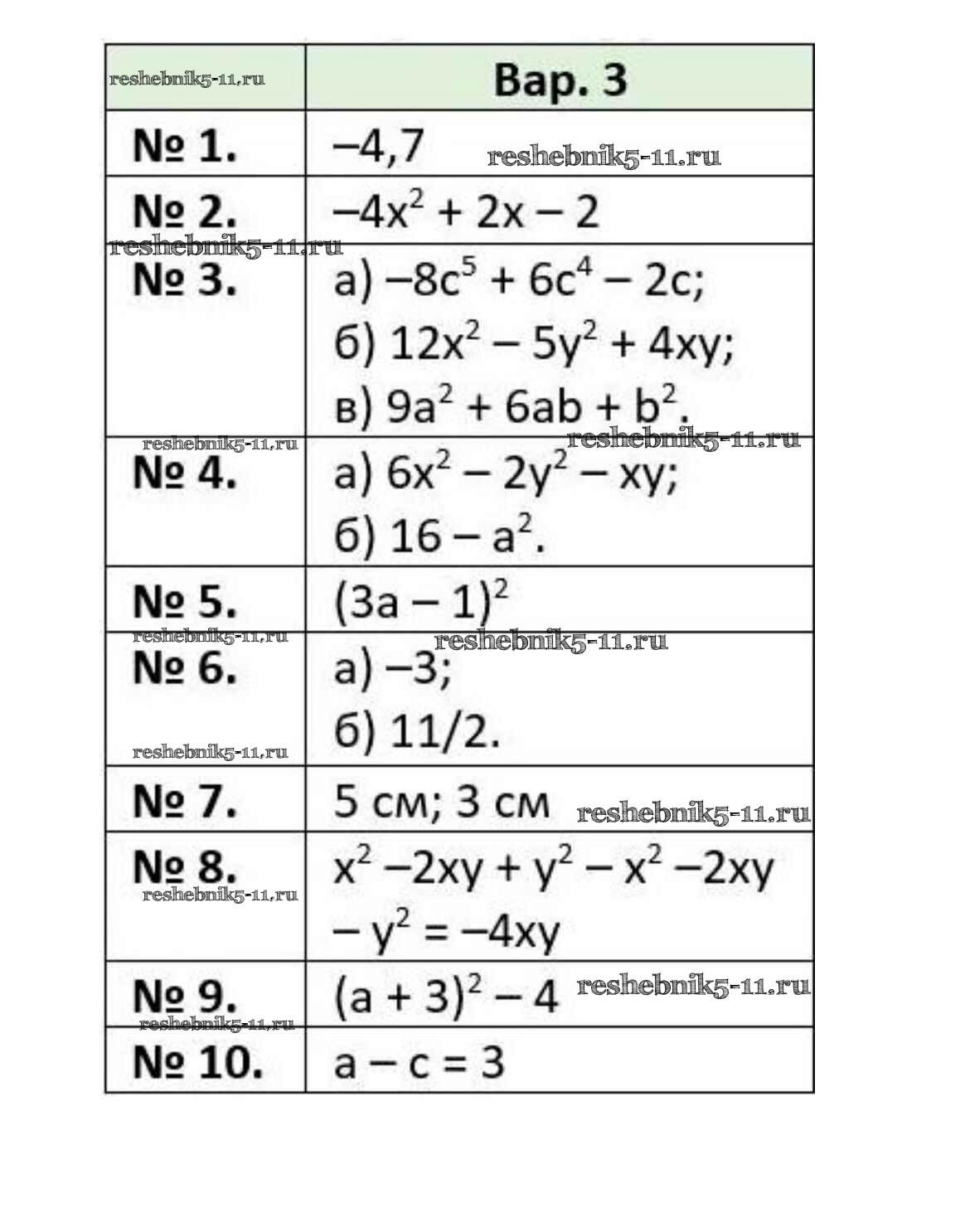 Готовая домашняя работа с ответами по Алгебре за 7 класс Кузнецова, Минаева, Рослова, Суворова Контрольные работы Просвещение 2018 ФГОС - Контрольная работа №7. Многочлены Вариант 3