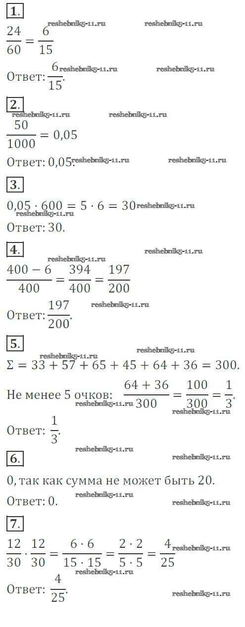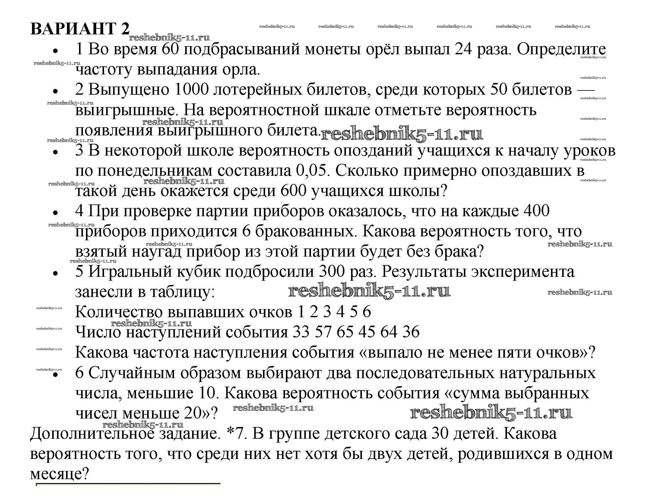 Готовая домашняя работа с ответами по Алгебре за 7 класс Кузнецова, Минаева, Рослова, Суворова Контрольные работы Просвещение 2018 ФГОС - Контрольная работа №9. Частота и вероятность Вариант 2