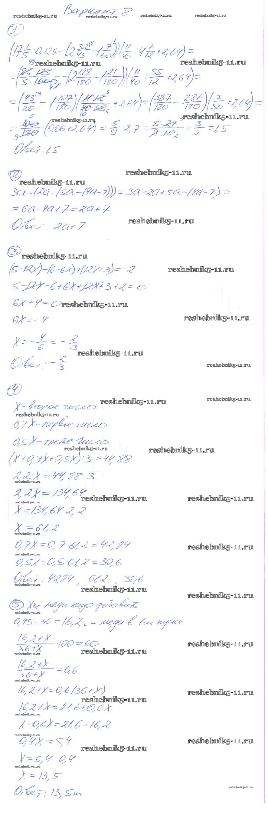 Готовая домашняя работа с ответами по Алгебре за 7 класс Зив, Гольдич Дидактические материалы Виктория плюс 2013 ФГОС - СР-2 8