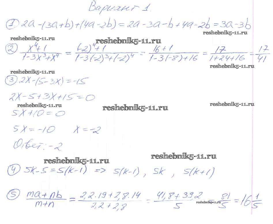 Готовая домашняя работа с ответами по Алгебре за 7 класс Зив, Гольдич Дидактические материалы Виктория плюс 2013 ФГОС - КР-1 1