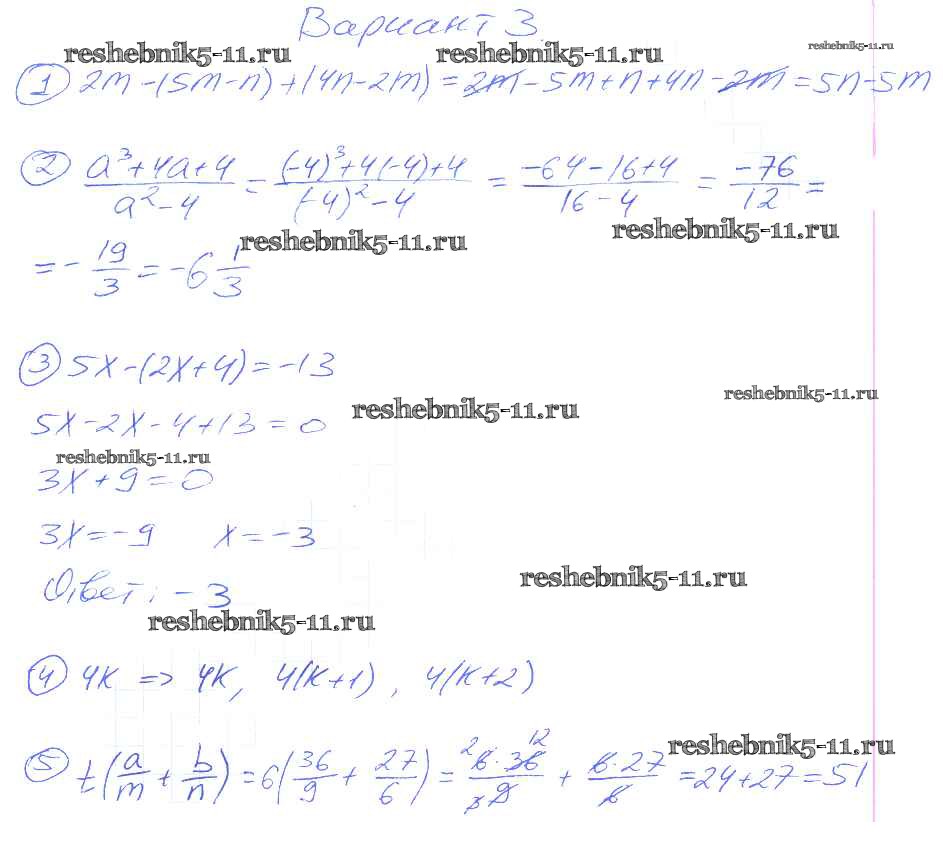 Готовая домашняя работа с ответами по Алгебре за 7 класс Зив, Гольдич Дидактические материалы Виктория плюс 2013 ФГОС - КР-1 3