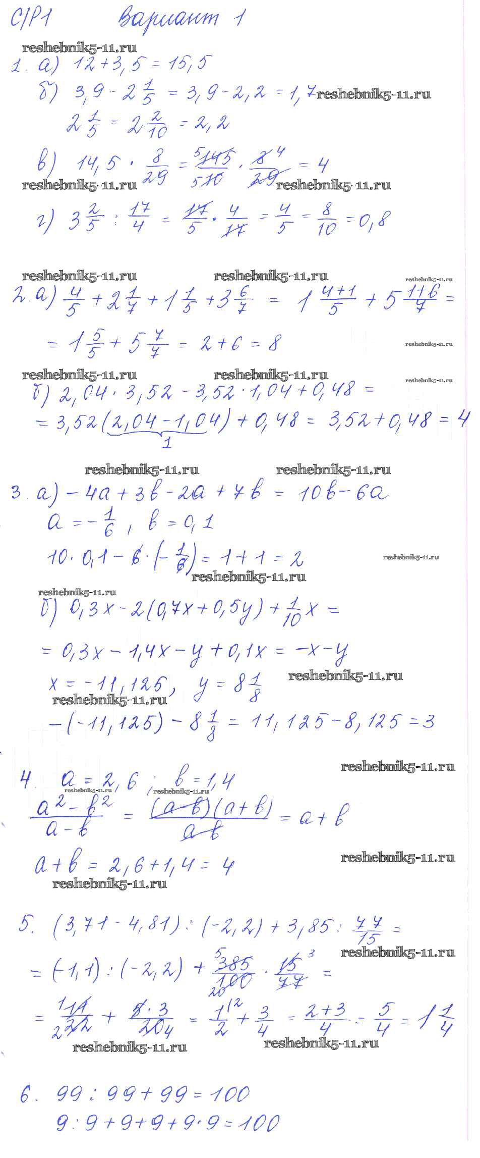 Решебник / самостоятельная работа. вариант / ср-1 / 1