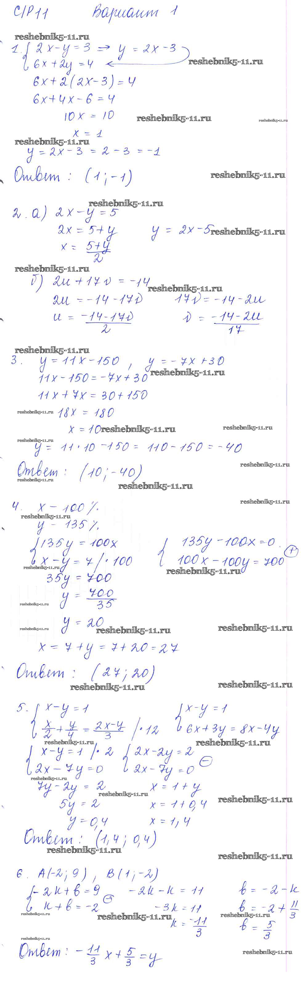 Решебник / самостоятельная работа. вариант / ср-11 / 1
