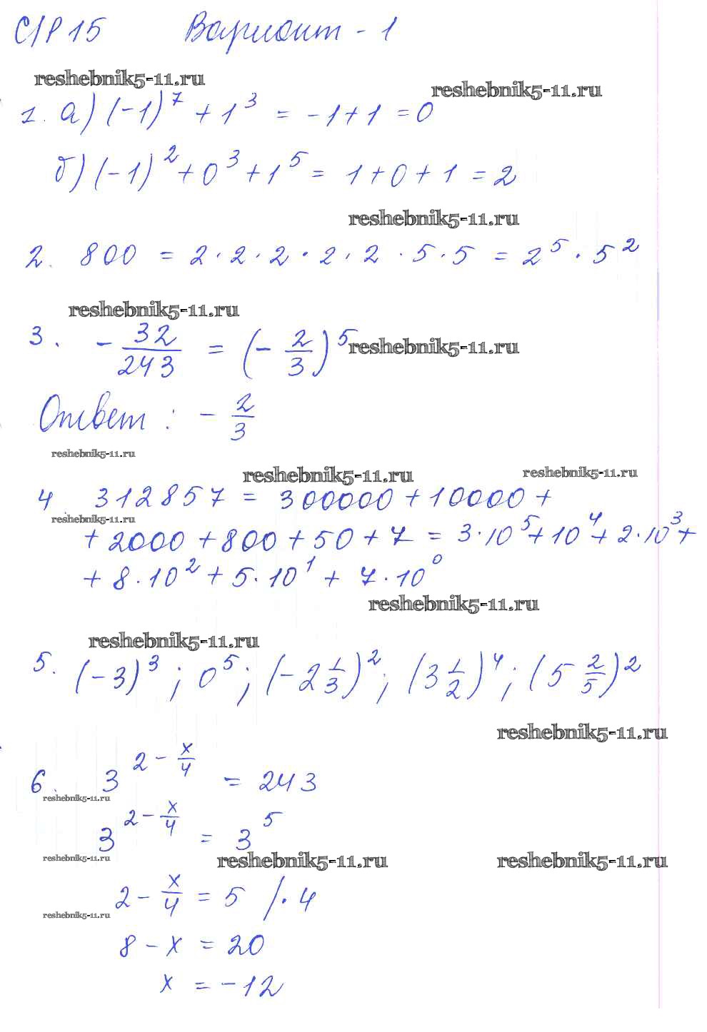 Готовая домашняя работа с ответами по Алгебре за 7 класс Попов Дидактические материалы УМК Экзамен 2016 ФГОС - СР-15 1