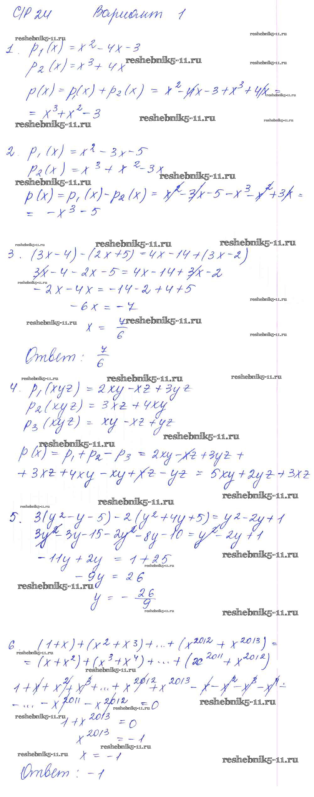 Готовая домашняя работа с ответами по Алгебре за 7 класс Попов Дидактические материалы УМК Экзамен 2016 ФГОС - СР-24 1