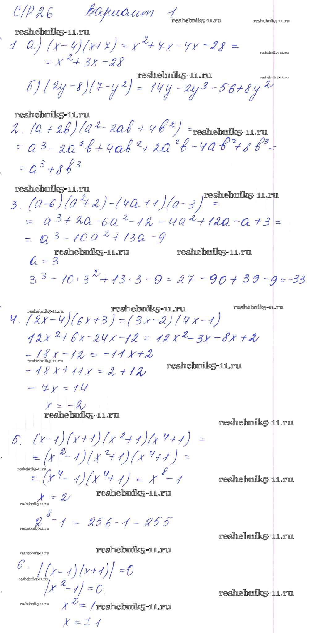 Готовая домашняя работа с ответами по Алгебре за 7 класс Попов Дидактические материалы УМК Экзамен 2016 ФГОС - СР-26 1