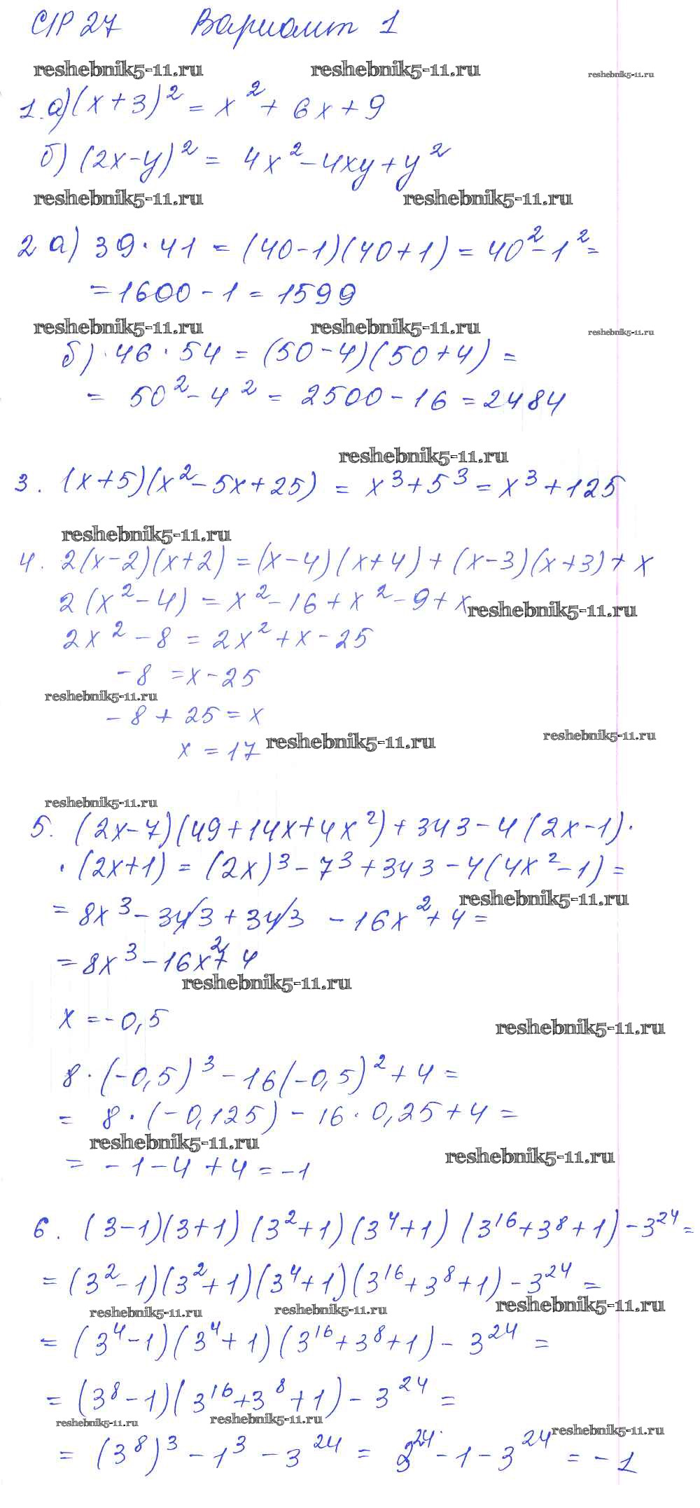 Готовая домашняя работа с ответами по Алгебре за 7 класс Попов Дидактические материалы УМК Экзамен 2016 ФГОС - СР-27 1