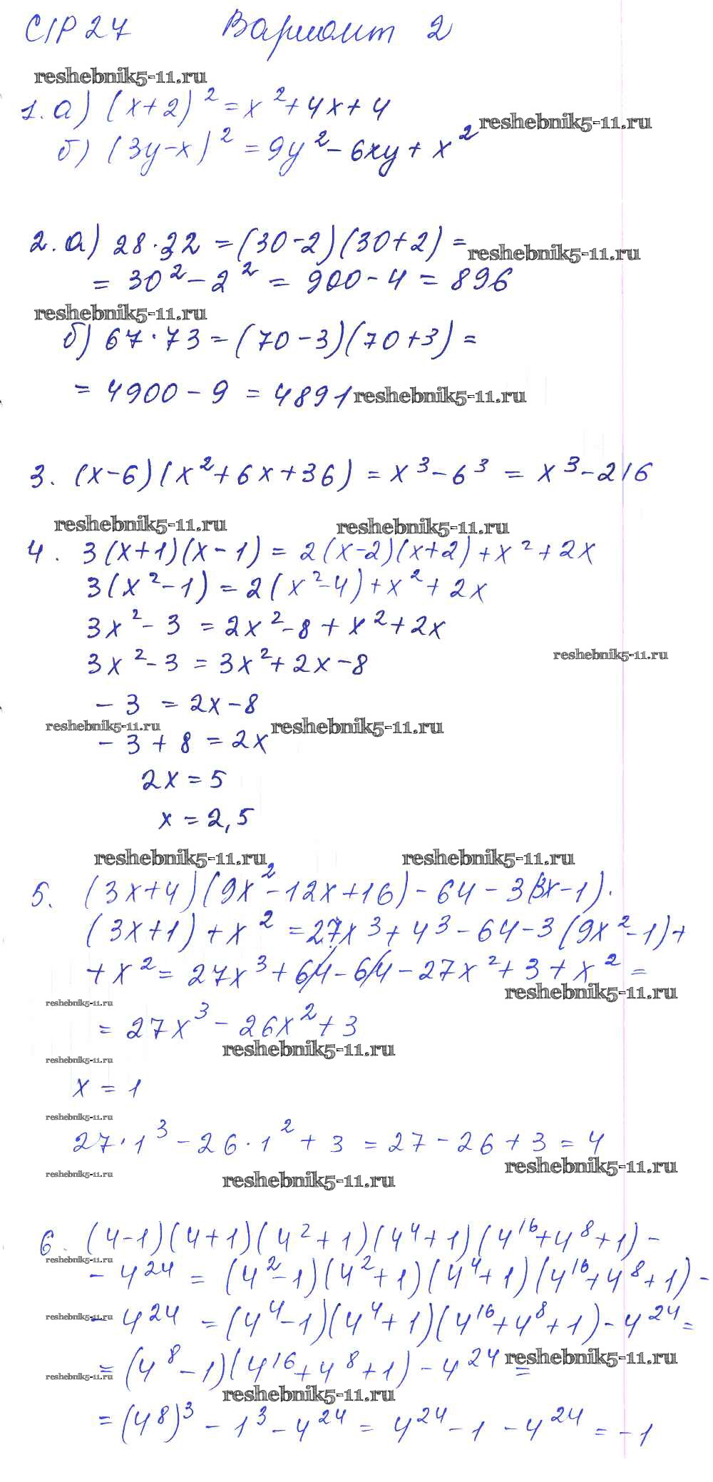Готовая домашняя работа с ответами по Алгебре за 7 класс Попов Дидактические материалы УМК Экзамен 2016 ФГОС - СР-27 2