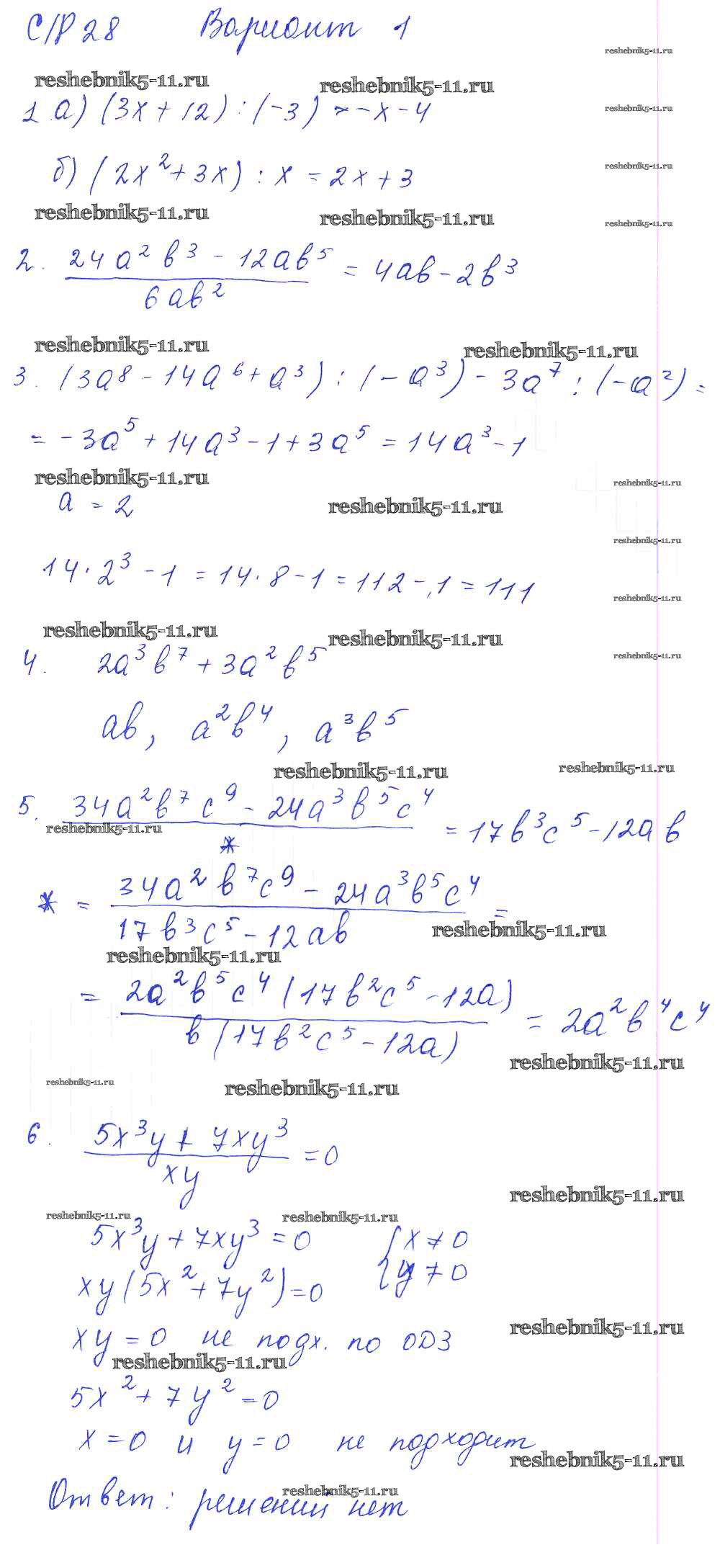 Готовая домашняя работа с ответами по Алгебре за 7 класс Попов Дидактические материалы УМК Экзамен 2016 ФГОС - СР-28 1