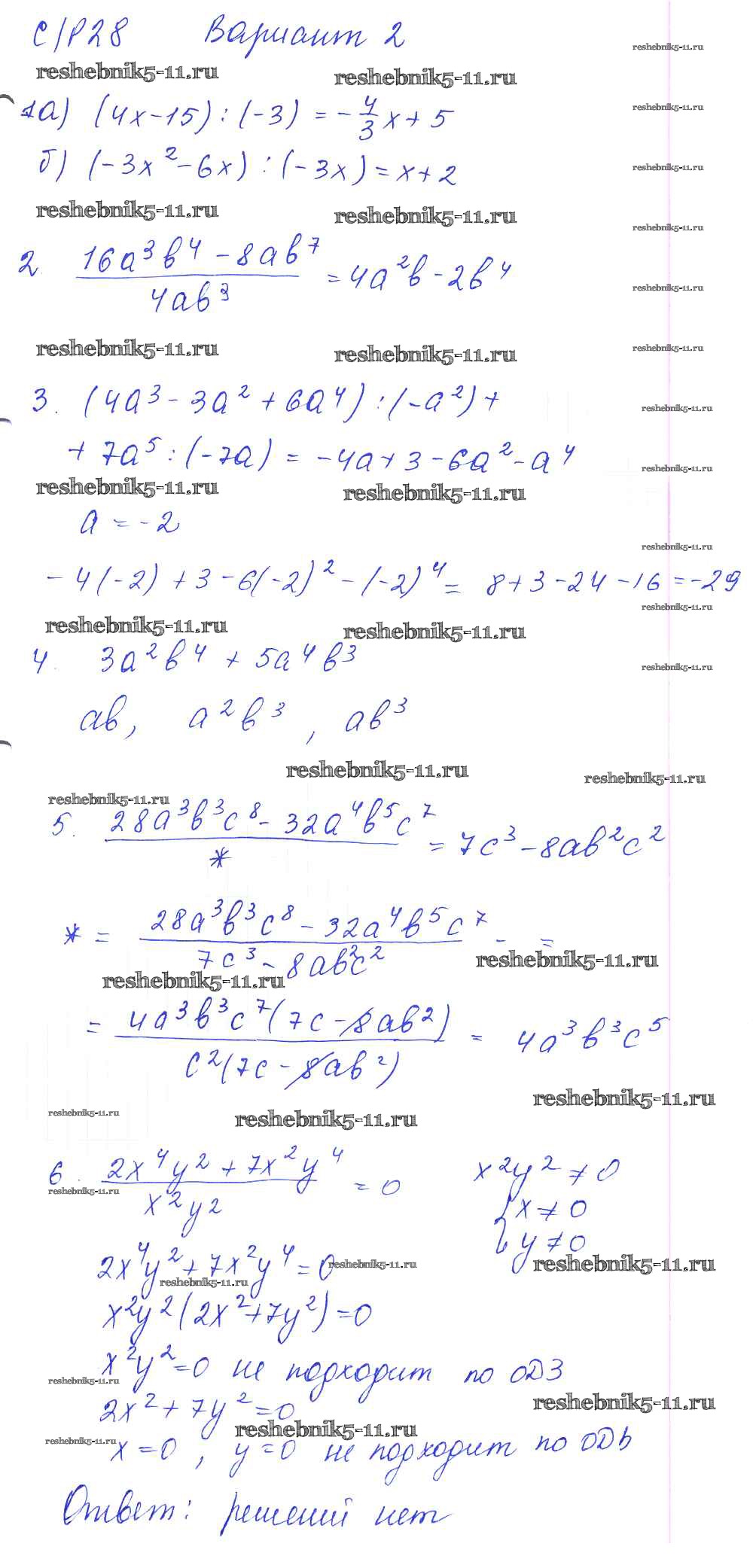 Готовая домашняя работа с ответами по Алгебре за 7 класс Попов Дидактические материалы УМК Экзамен 2016 ФГОС - СР-28 2