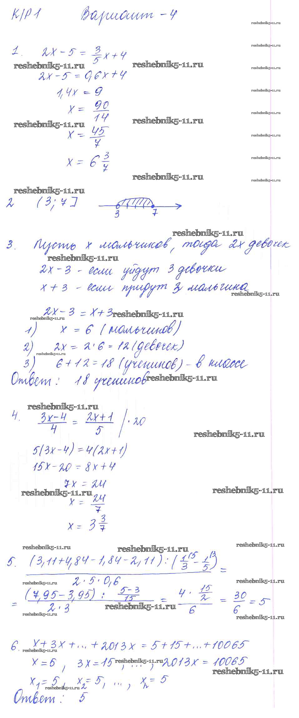 Готовая домашняя работа с ответами по Алгебре за 7 класс Попов Дидактические материалы УМК Экзамен 2016 ФГОС - КР-1 4
