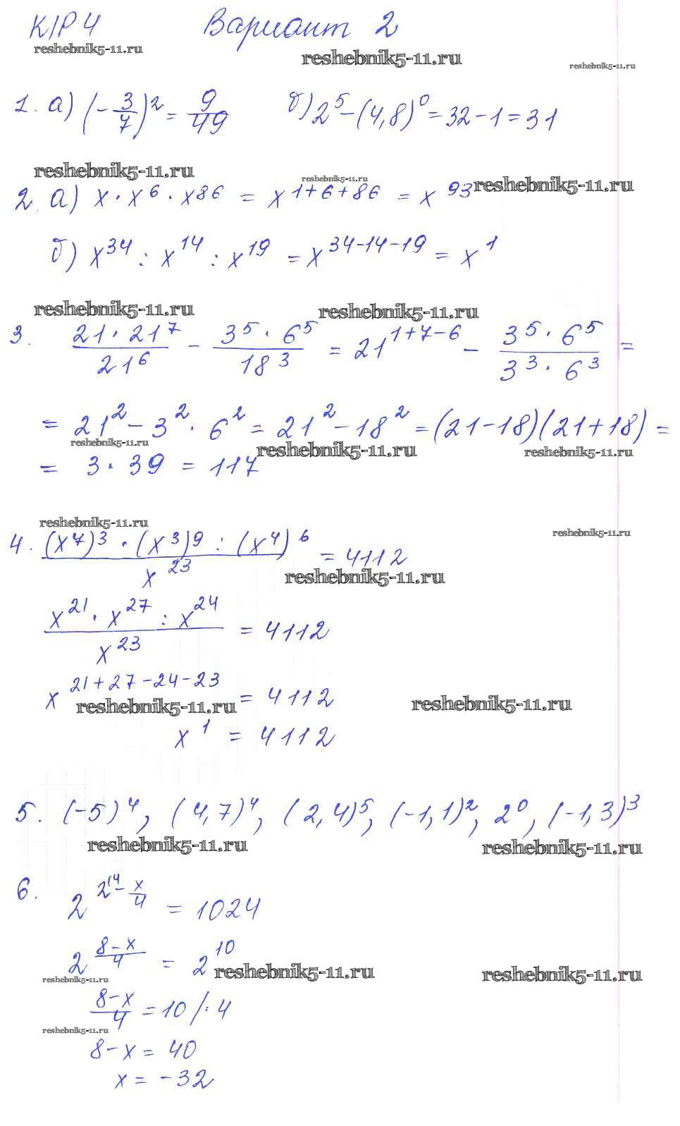 Готовая домашняя работа с ответами по Алгебре за 7 класс Попов Дидактические материалы УМК Экзамен 2016 ФГОС - КР-4 2