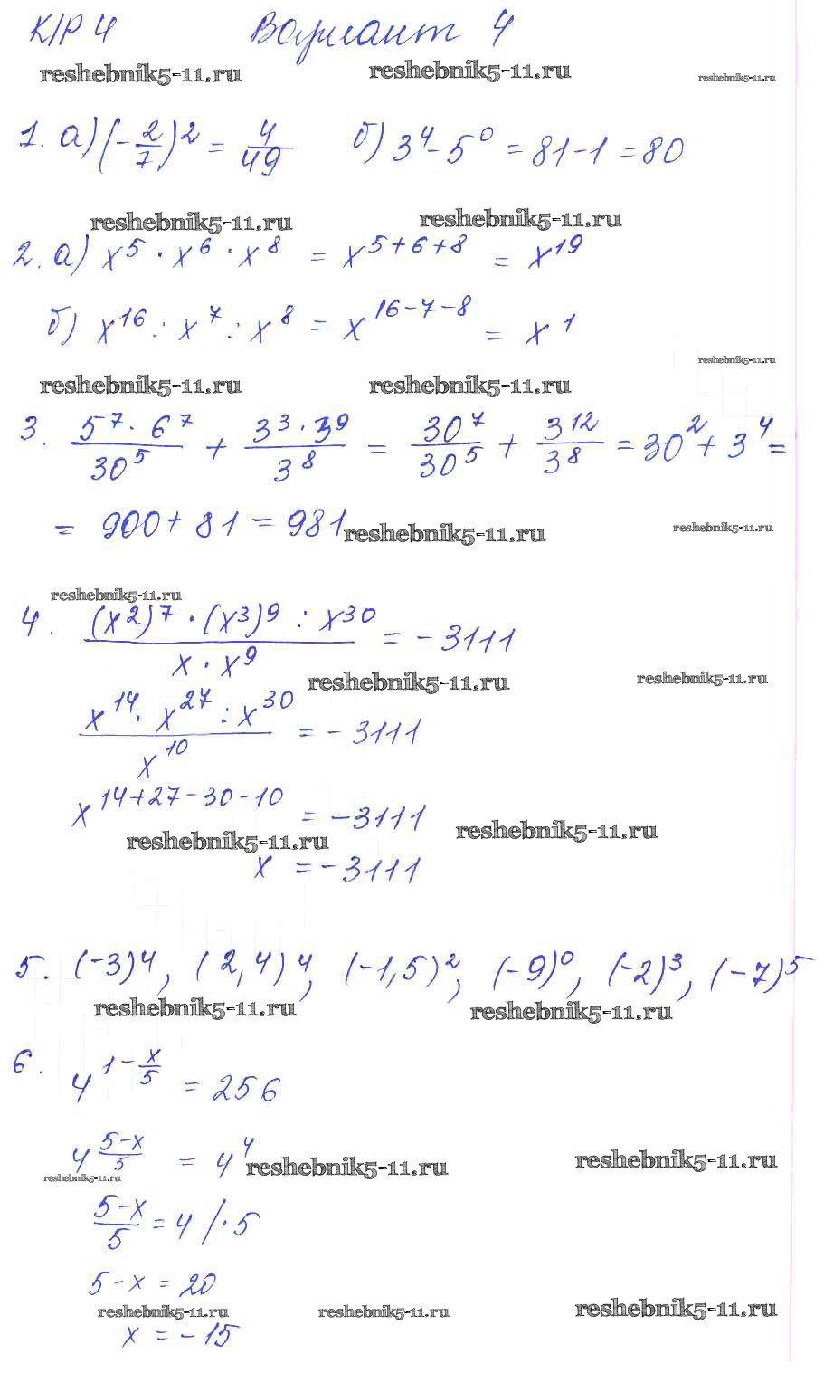 Готовая домашняя работа с ответами по Алгебре за 7 класс Попов Дидактические материалы УМК Экзамен 2016 ФГОС - КР-4 4