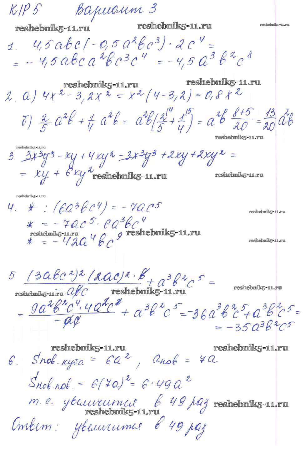 Готовая домашняя работа с ответами по Алгебре за 7 класс Попов Дидактические материалы УМК Экзамен 2016 ФГОС - КР-5 3