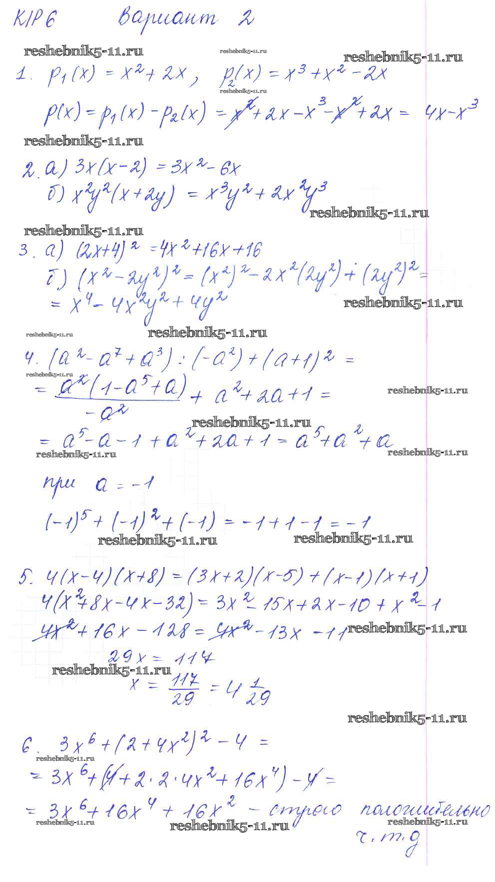 Готовая домашняя работа с ответами по Алгебре за 7 класс Попов Дидактические материалы УМК Экзамен 2016 ФГОС - КР-6 2
