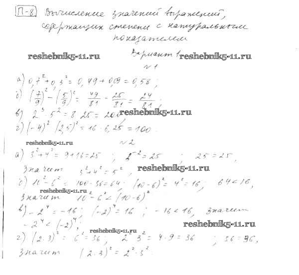 Готовая домашняя работа с ответами по Алгебре за 7 класс Евстафьева, Карп Дидактические материалы Просвещение 2018 ФГОС - ПР-8 вариант 1