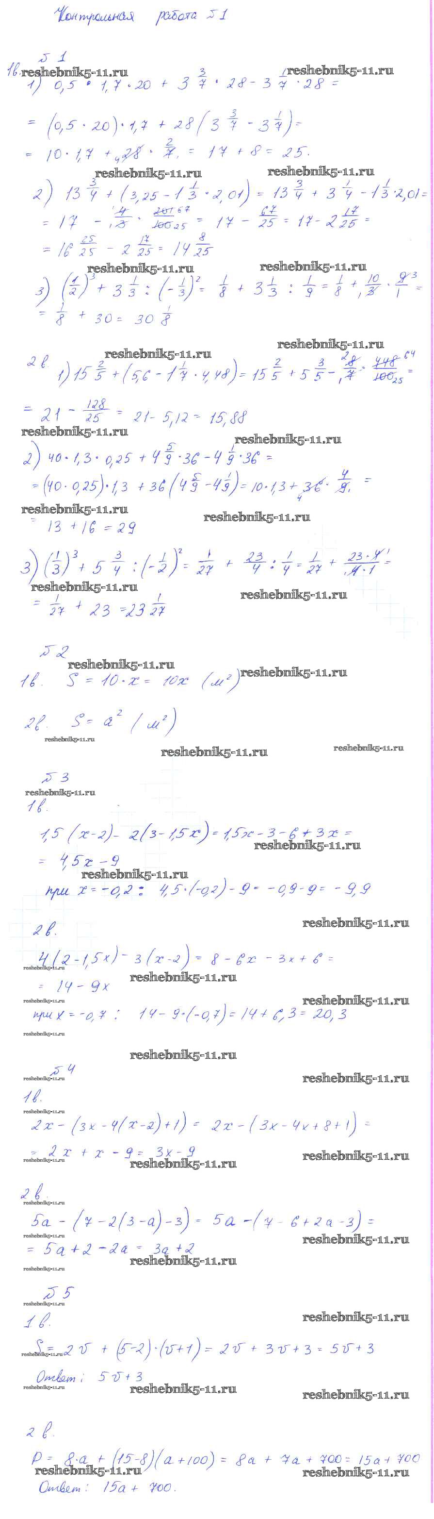 Готовая домашняя работа с ответами по Алгебре за 7 класс Ткачева, Федорова, Шабунин Дидактические материалы УМК Просвещение 2012 ФГОС - Контрольные работы 1