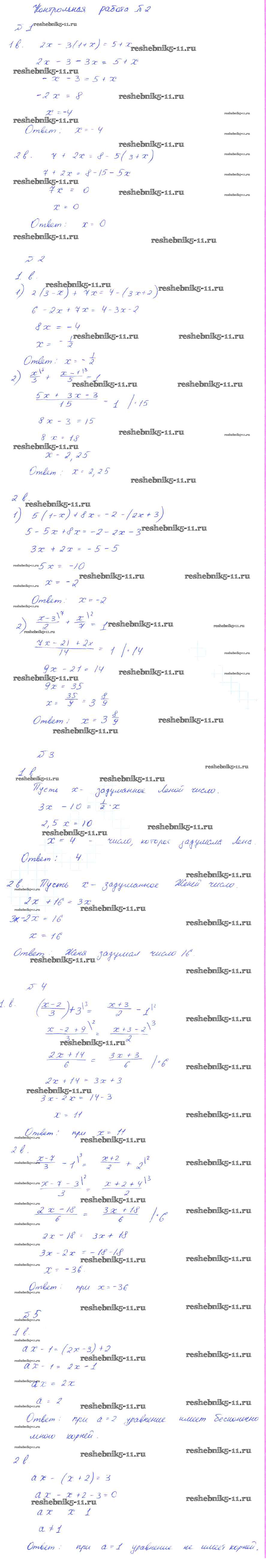 Готовая домашняя работа с ответами по Алгебре за 7 класс Ткачева, Федорова, Шабунин Дидактические материалы УМК Просвещение 2012 ФГОС - Контрольные работы 2