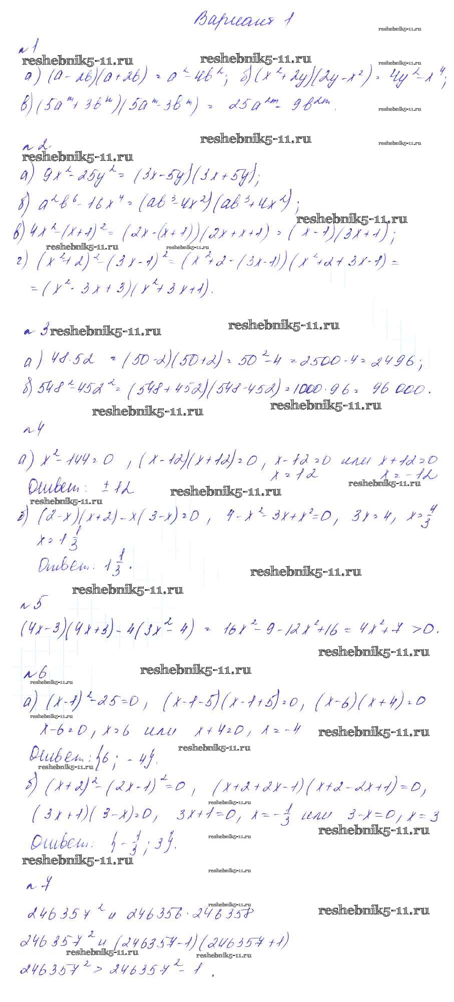 Готовая домашняя работа с ответами по Алгебре за 7 класс Феоктистов Дидактические материалы Углубленный уровень Мнемозина 2016 ФГОС - СР-14 Вариант 1