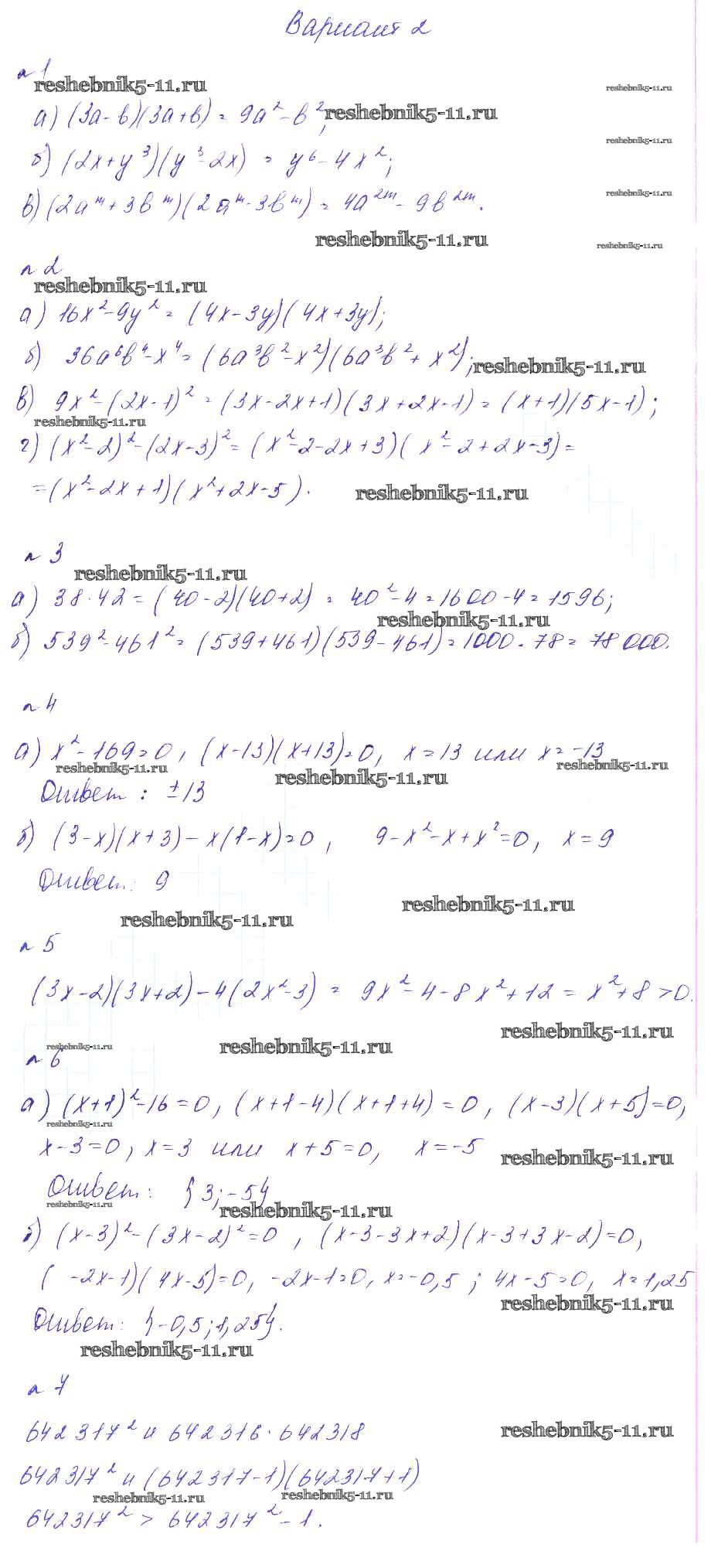 Готовая домашняя работа с ответами по Алгебре за 7 класс Феоктистов Дидактические материалы Углубленный уровень Мнемозина 2016 ФГОС - СР-14 Вариант 2