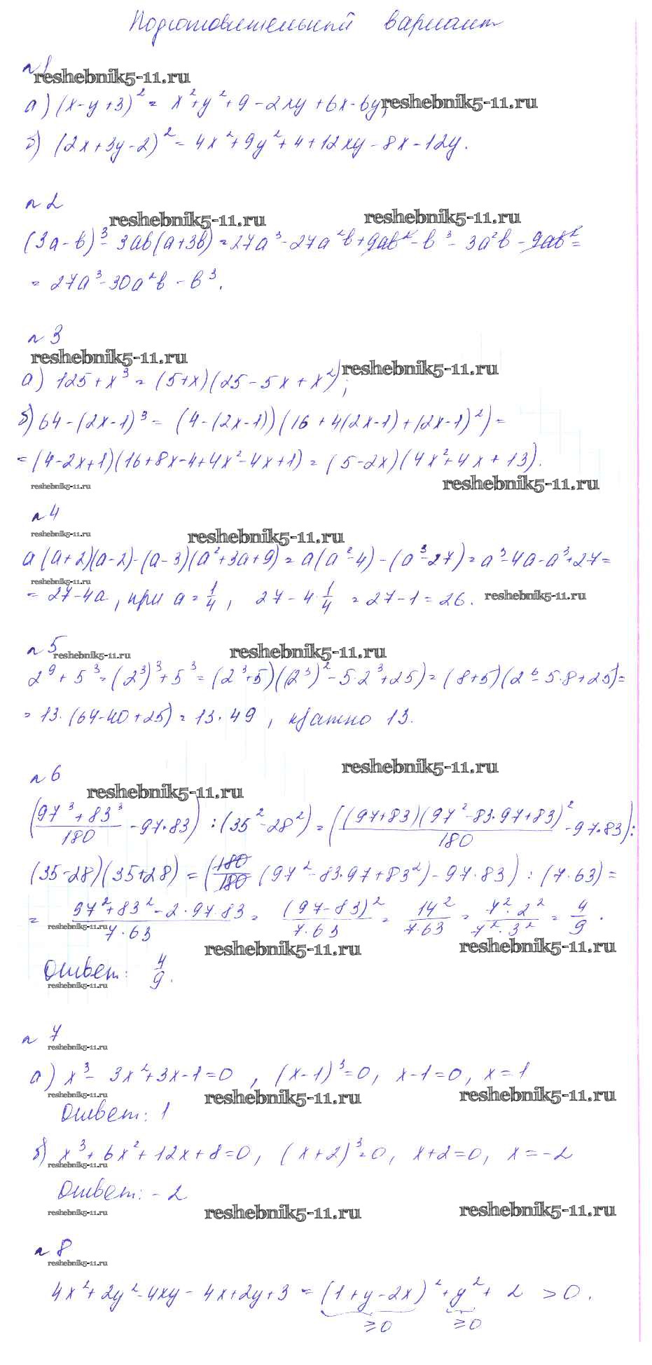 Готовая домашняя работа с ответами по Алгебре за 7 класс Феоктистов Дидактические материалы Углубленный уровень Мнемозина 2016 ФГОС - СР-17 Подготовительный вариант