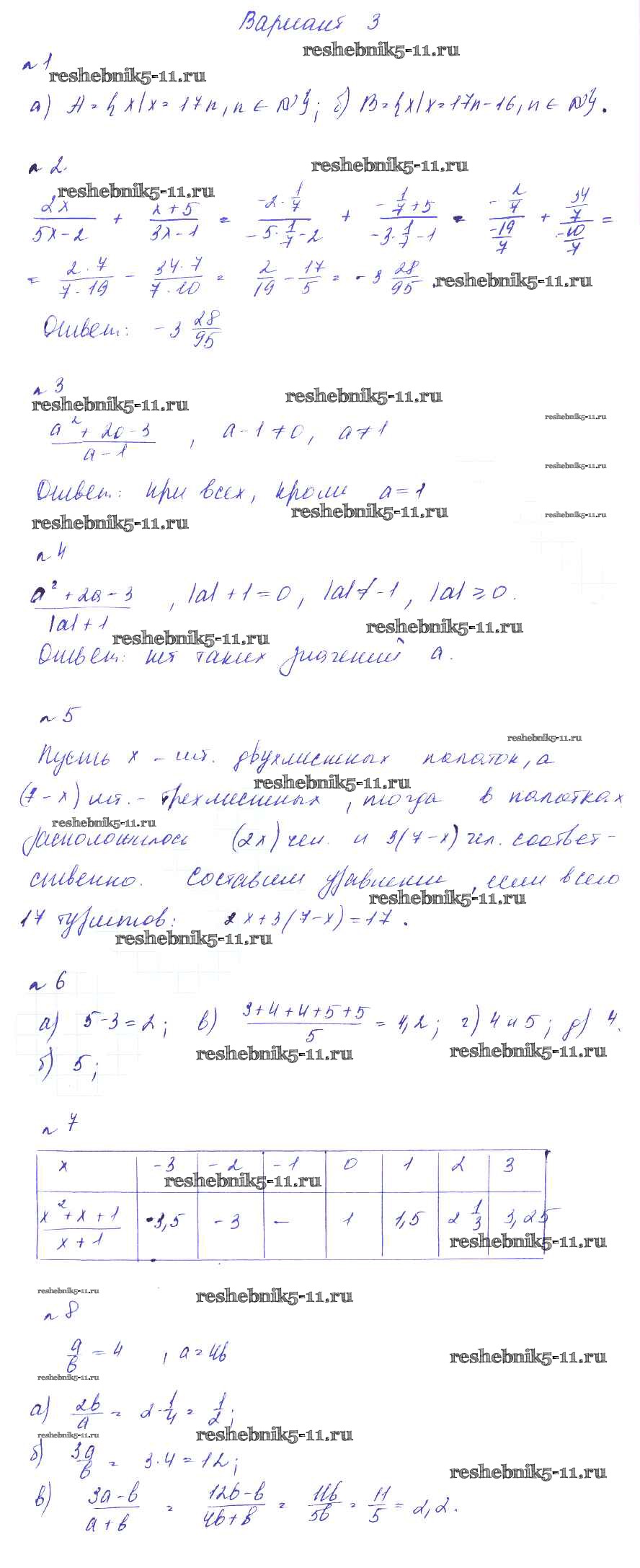 Готовая домашняя работа с ответами по Алгебре за 7 класс Феоктистов Дидактические материалы Углубленный уровень Мнемозина 2016 ФГОС - СР-3 Вариант 3