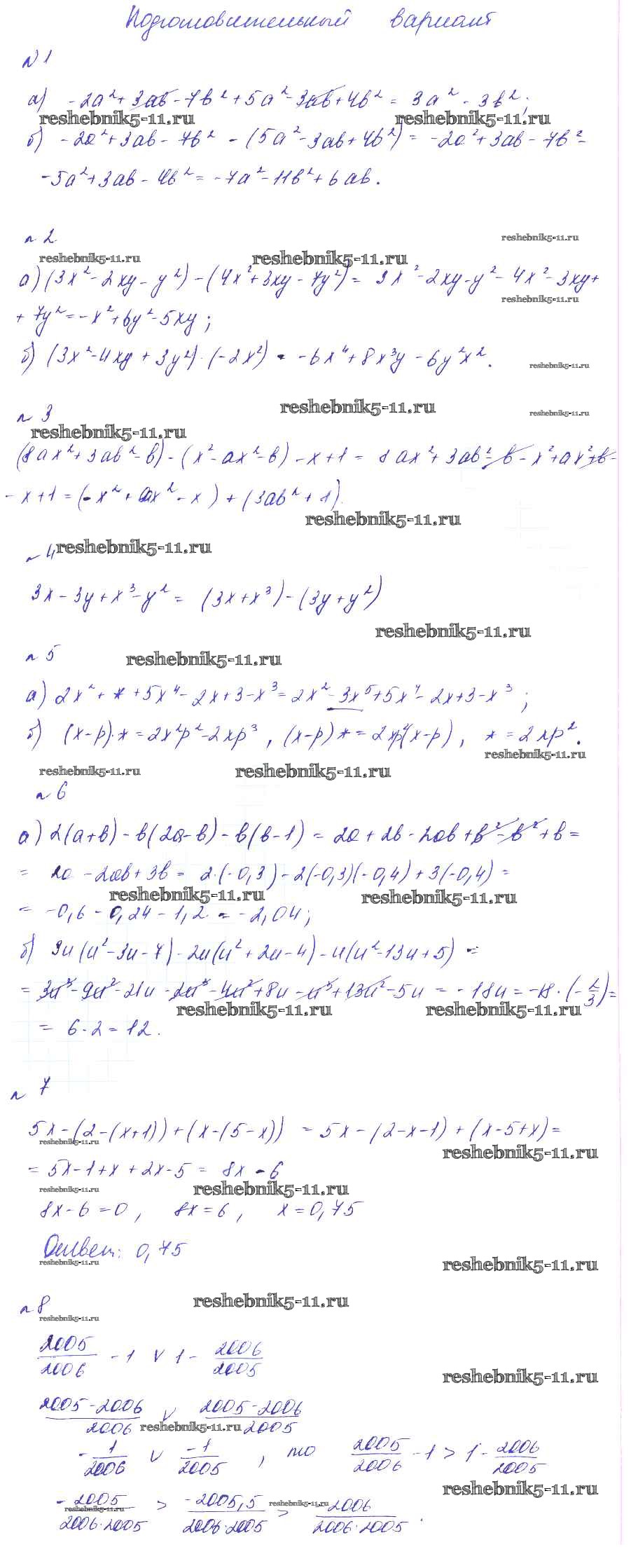 Готовая домашняя работа с ответами по Алгебре за 7 класс Феоктистов Дидактические материалы Углубленный уровень Мнемозина 2016 ФГОС - СР-7 Подготовительный вариант