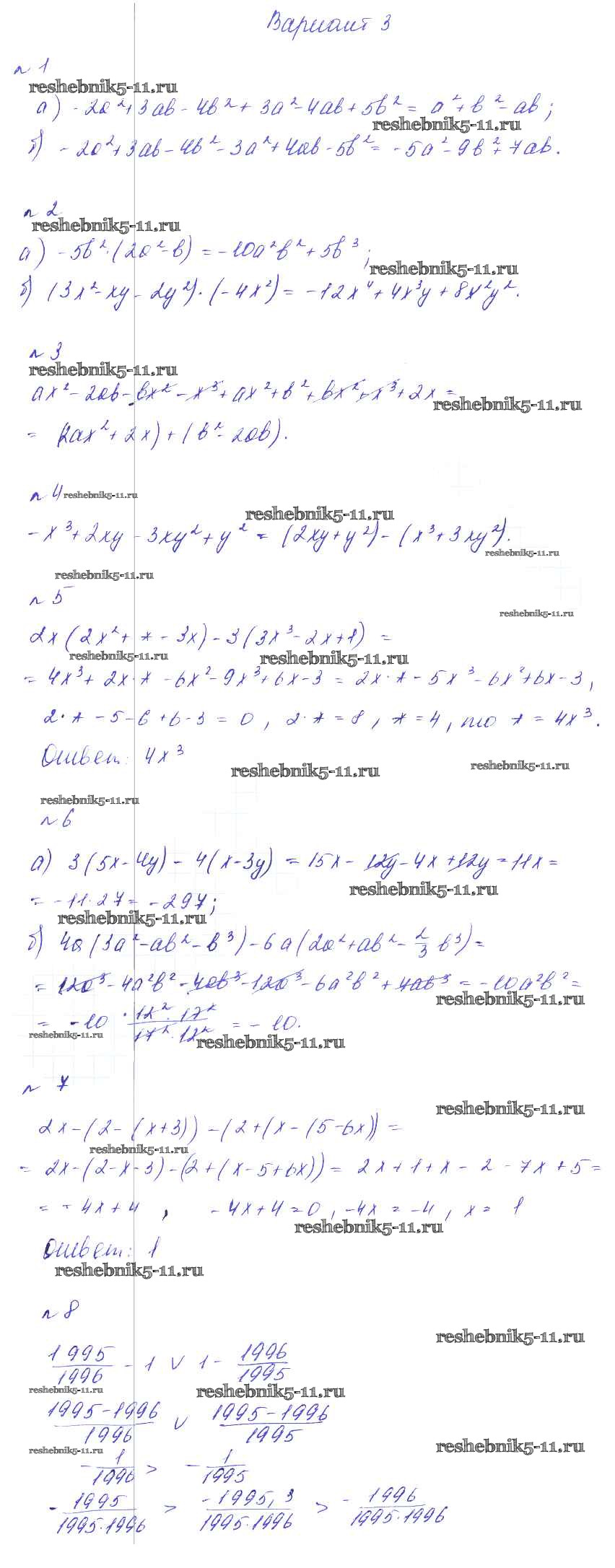 Готовая домашняя работа с ответами по Алгебре за 7 класс Феоктистов Дидактические материалы Углубленный уровень Мнемозина 2016 ФГОС - СР-7 Вариант 3