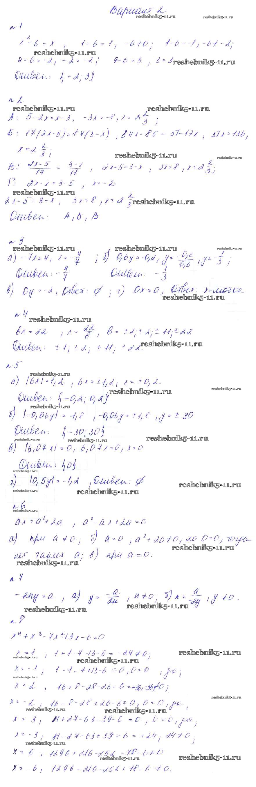 Готовая домашняя работа с ответами по Алгебре за 7 класс Феоктистов Дидактические материалы Углубленный уровень Мнемозина 2016 ФГОС - СР-9 Вариант 2
