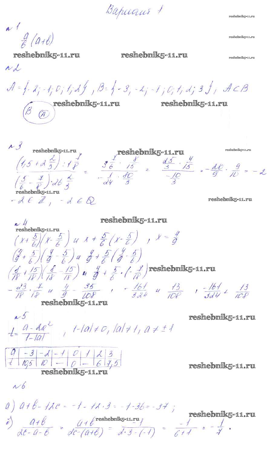 Готовая домашняя работа с ответами по Алгебре за 7 класс Феоктистов Дидактические материалы Углубленный уровень Мнемозина 2016 ФГОС - КР-1 Вариант 1