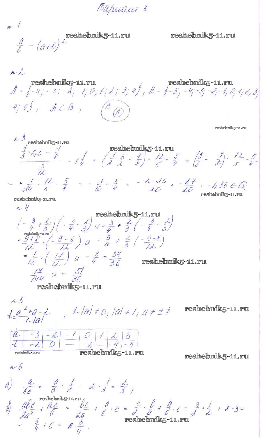 Готовая домашняя работа с ответами по Алгебре за 7 класс Феоктистов Дидактические материалы Углубленный уровень Мнемозина 2016 ФГОС - КР-1 Вариант 3