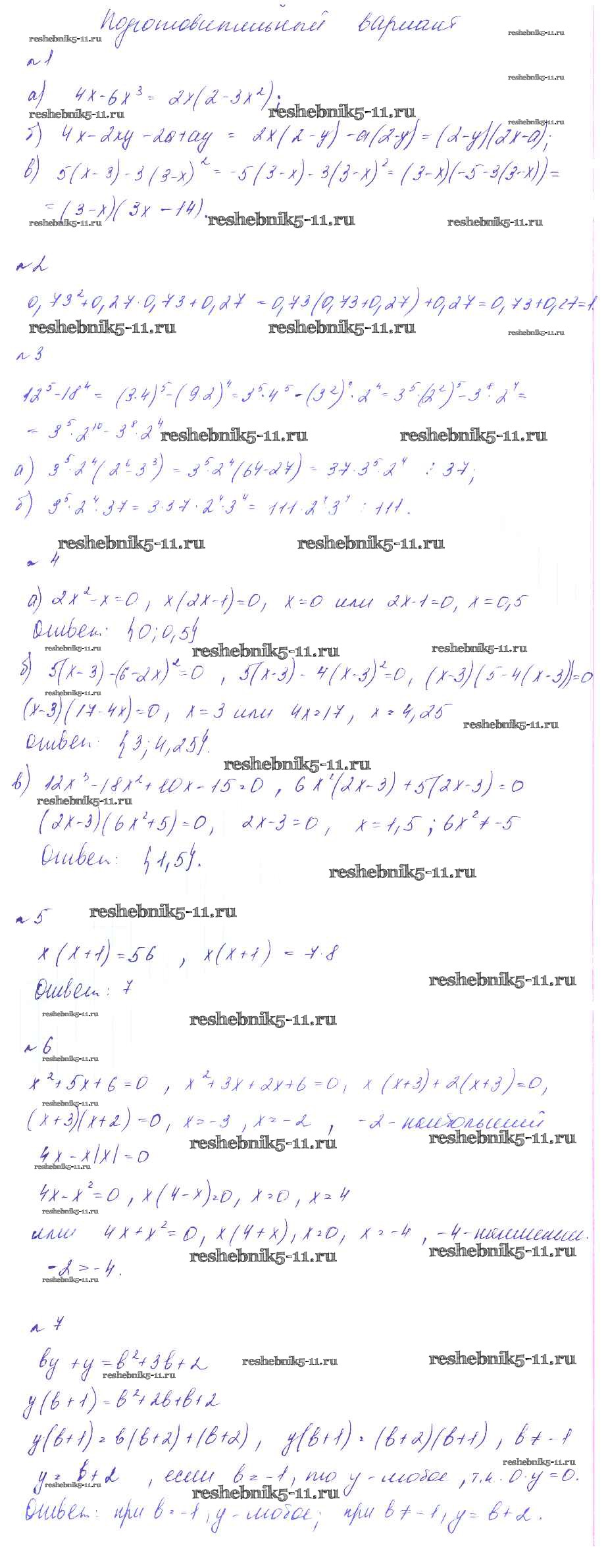 Готовая домашняя работа с ответами по Алгебре за 7 класс Феоктистов Дидактические материалы Углубленный уровень Мнемозина 2016 ФГОС - КР-5 Подготовительный вариант
