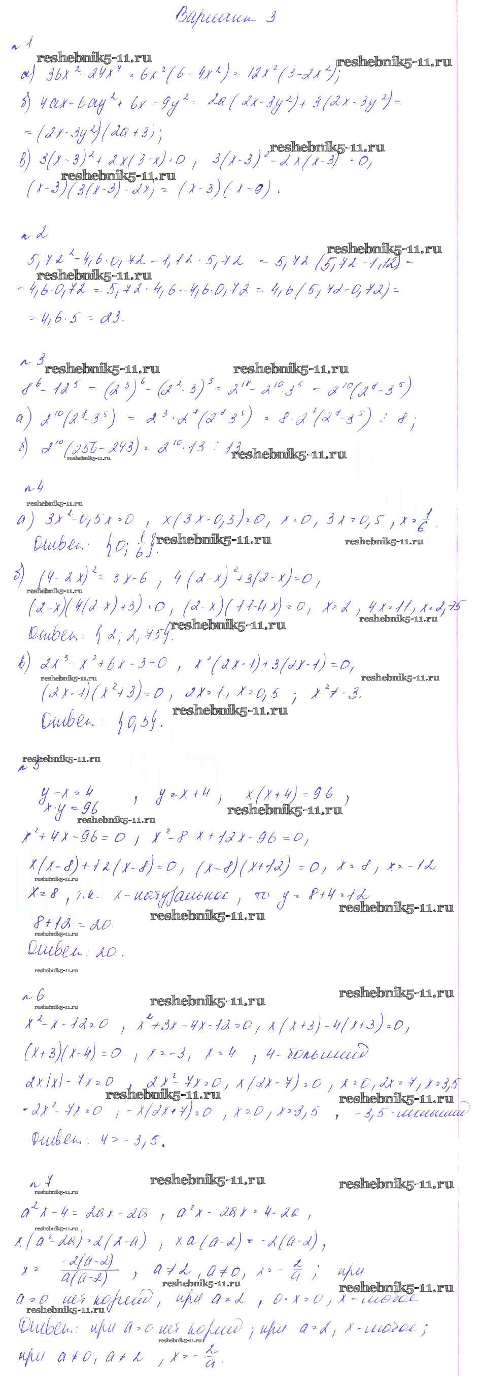 Готовая домашняя работа с ответами по Алгебре за 7 класс Феоктистов Дидактические материалы Углубленный уровень Мнемозина 2016 ФГОС - КР-5 Вариант 3