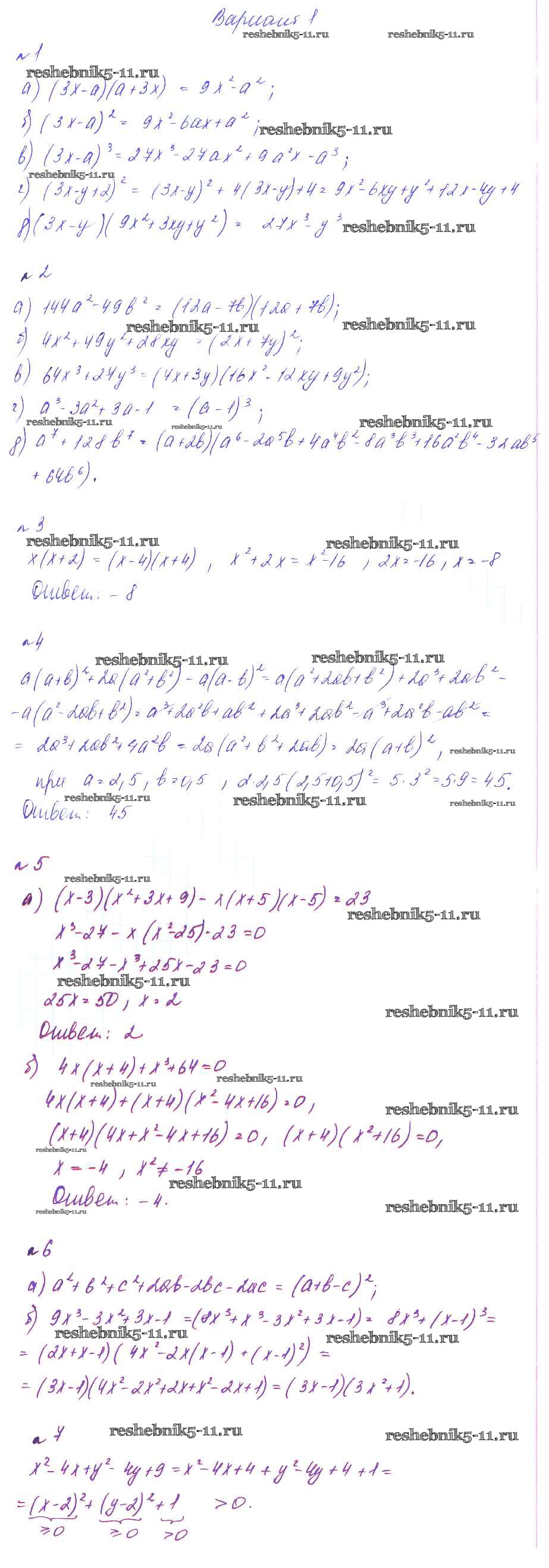 Готовая домашняя работа с ответами по Алгебре за 7 класс Феоктистов Дидактические материалы Углубленный уровень Мнемозина 2016 ФГОС - КР-6 Вариант 1