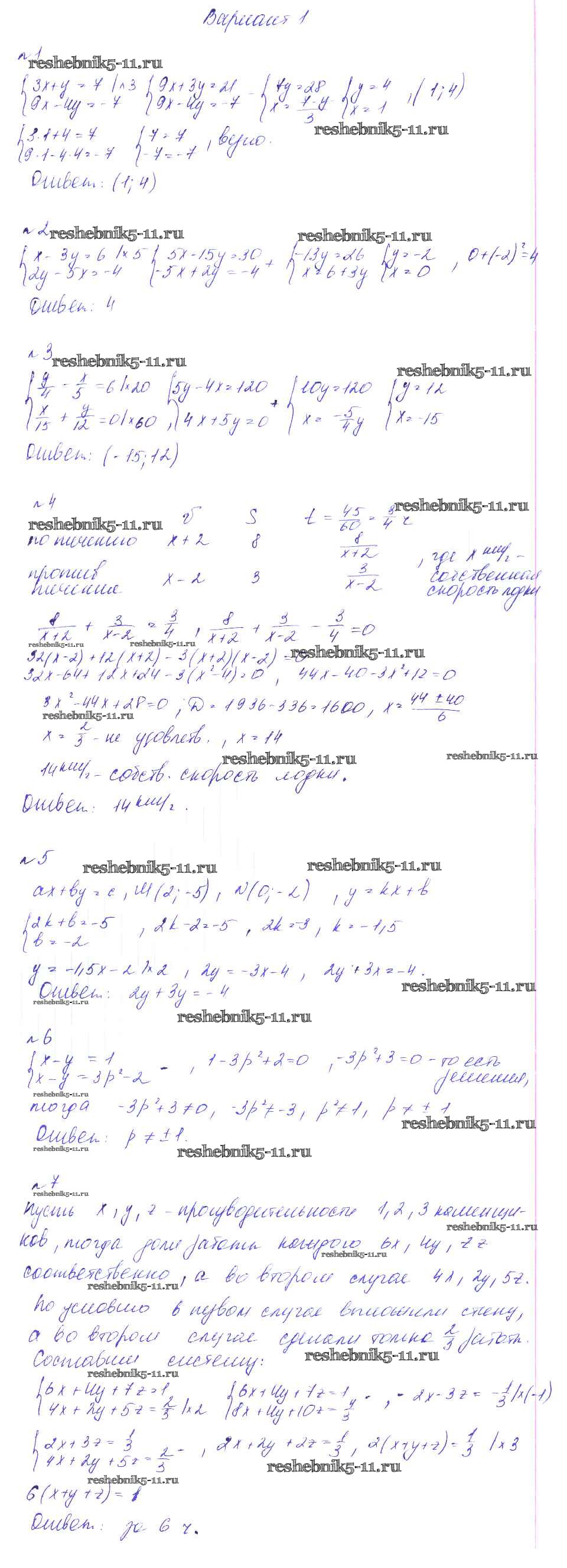 Готовая домашняя работа с ответами по Алгебре за 7 класс Феоктистов Дидактические материалы Углубленный уровень Мнемозина 2016 ФГОС - КР-8 Вариант 1