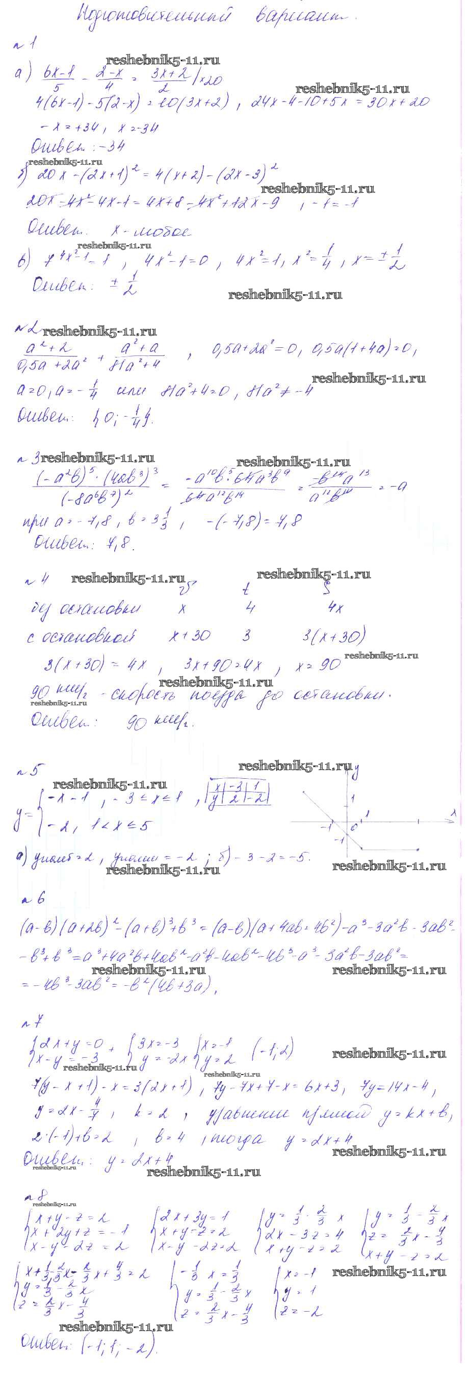 Готовая домашняя работа с ответами по Алгебре за 7 класс Феоктистов Дидактические материалы Углубленный уровень Мнемозина 2016 ФГОС - Итоговая контрольная работа Подготовительный вариант