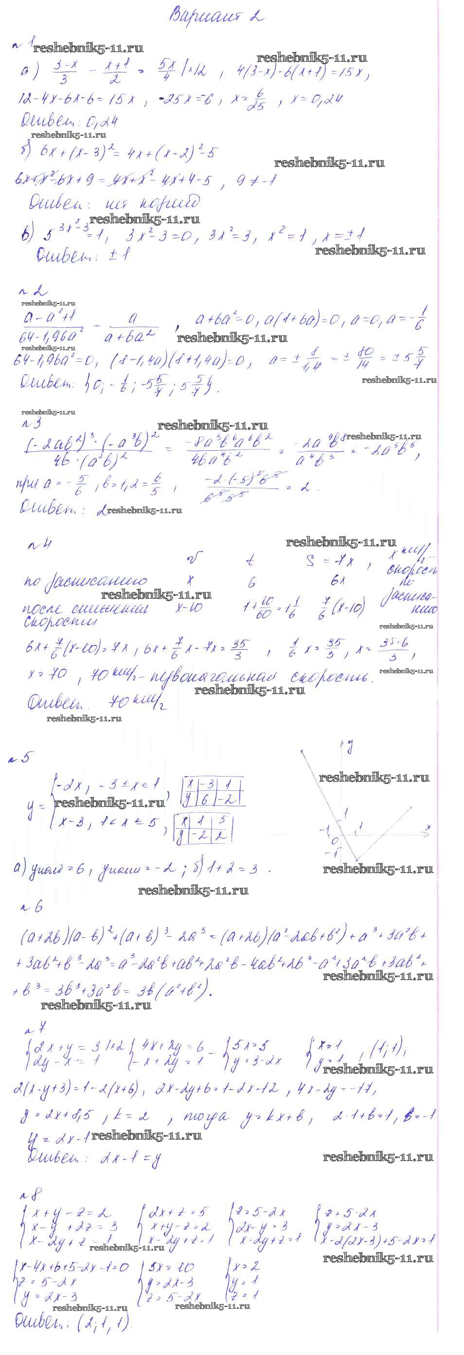 Готовая домашняя работа с ответами по Алгебре за 7 класс Феоктистов Дидактические материалы Углубленный уровень Мнемозина 2016 ФГОС - Итоговая контрольная работа Вариант 2