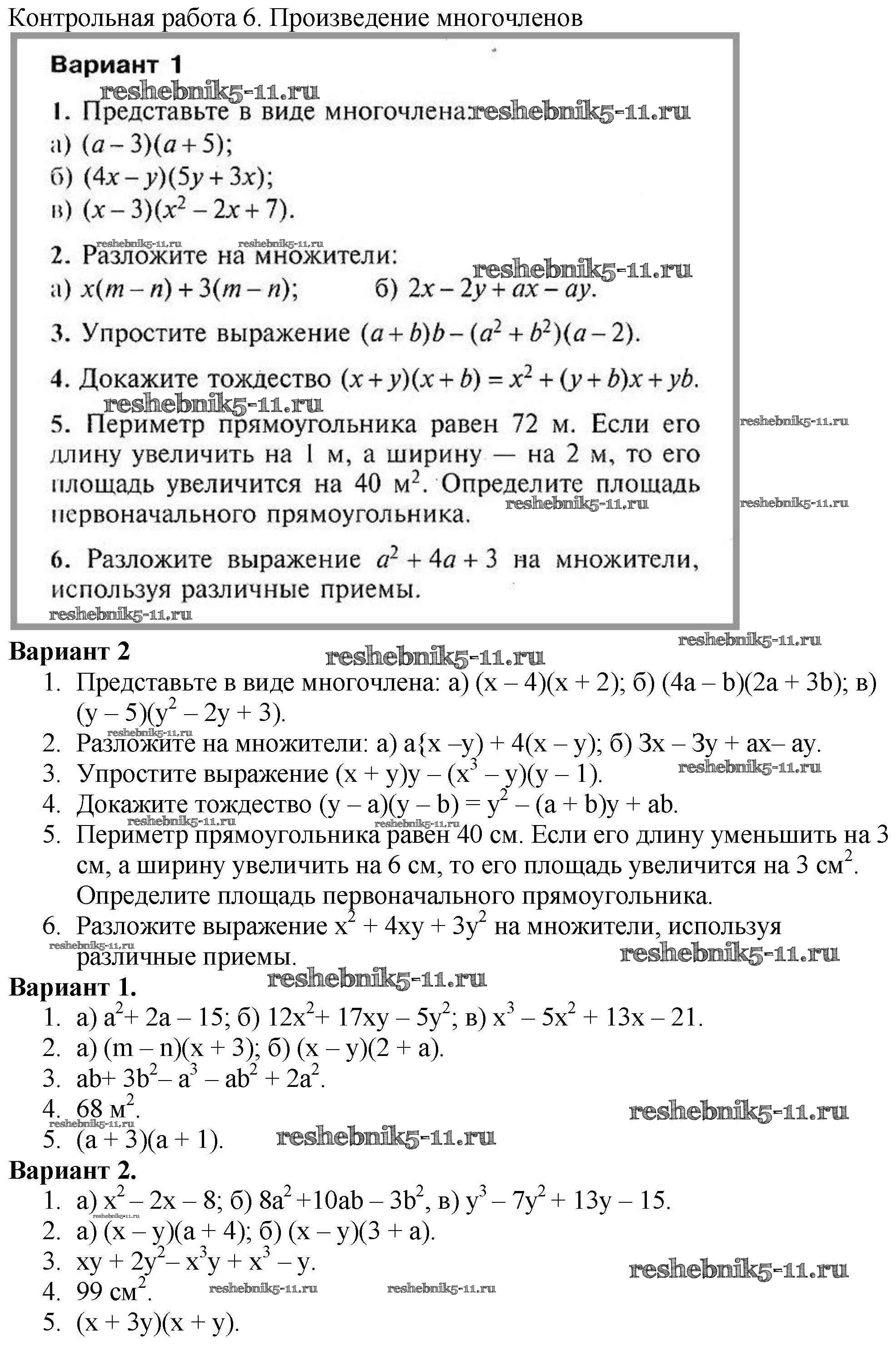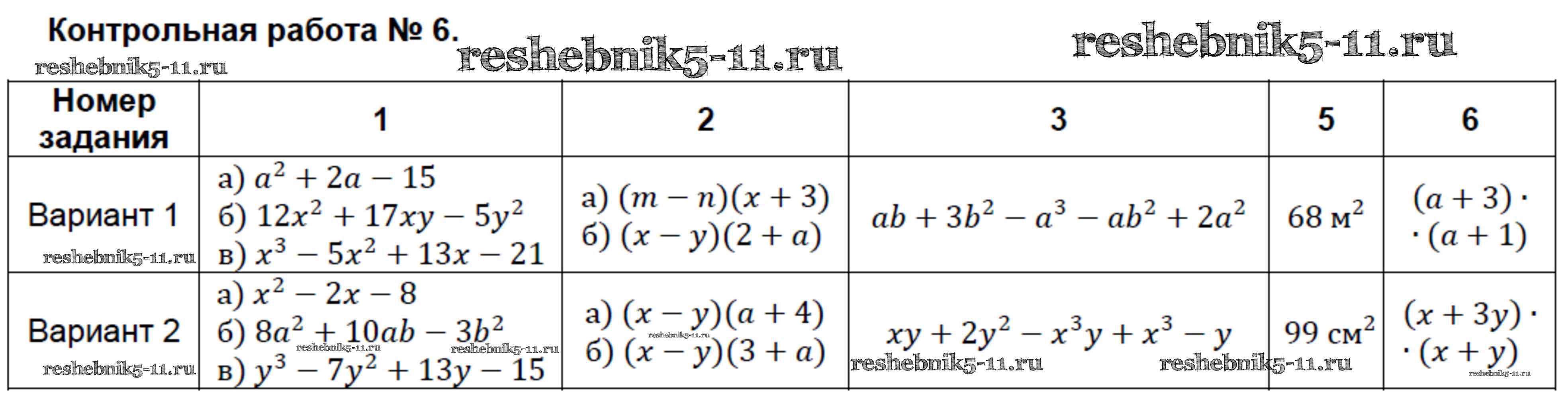 Готовая домашняя работа с ответами по Алгебре за 7 класс Мартышова Контрольно-измерительные материалы (КИМ) ВАКО 2017 ФГОС - Контрольные работы 6