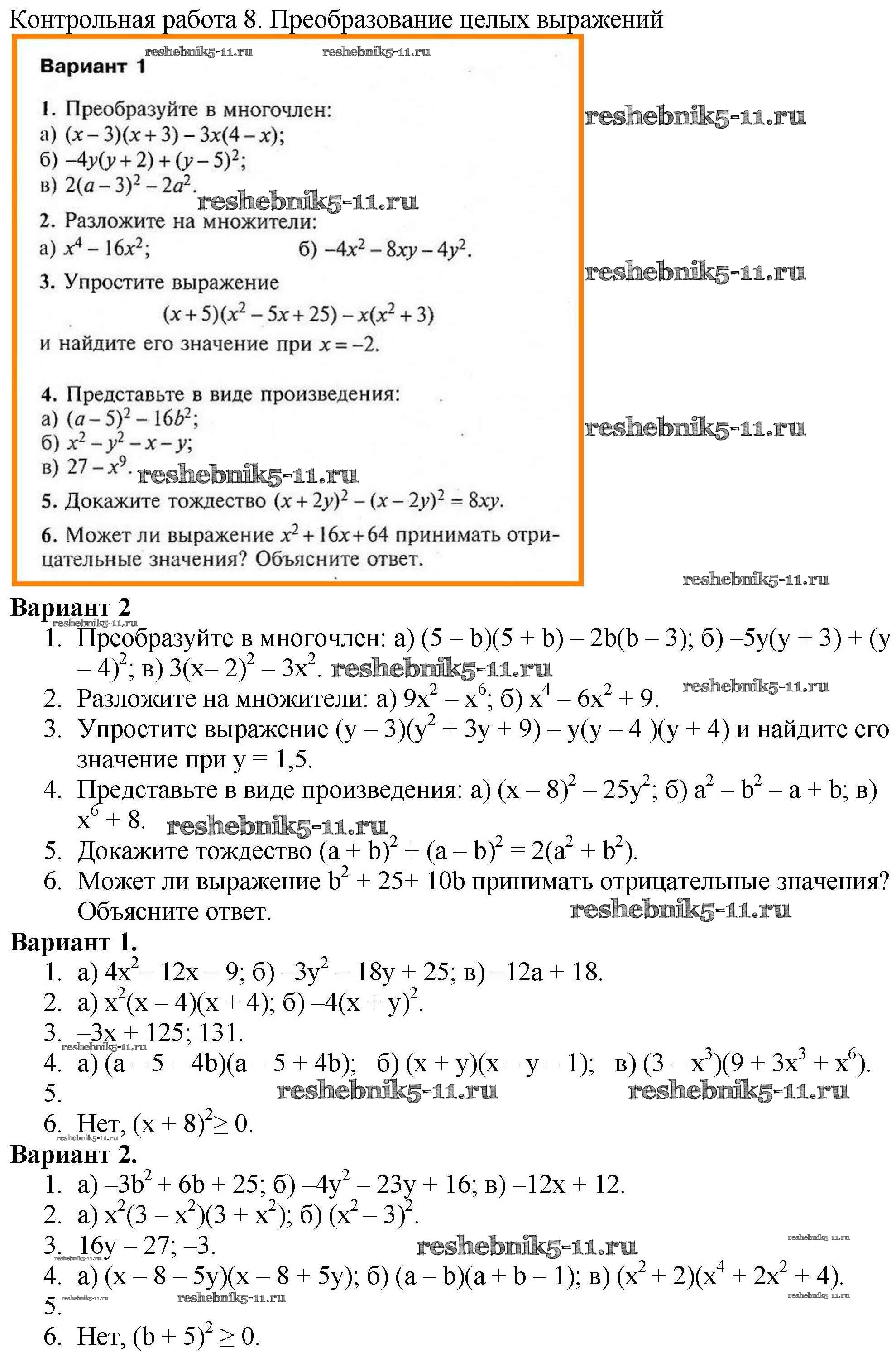 Готовая домашняя работа с ответами по Алгебре за 7 класс Мартышова Контрольно-измерительные материалы (КИМ) ВАКО 2017 ФГОС - Контрольные работы 8