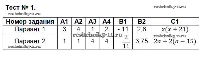 Готовая домашняя работа с ответами по Алгебре за 7 класс Мартышова Контрольно-измерительные материалы (КИМ) ВАКО 2017 ФГОС - Тесты 1