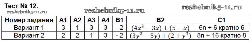 Готовая домашняя работа с ответами по Алгебре за 7 класс Мартышова Контрольно-измерительные материалы (КИМ) ВАКО 2017 ФГОС - Тесты 12