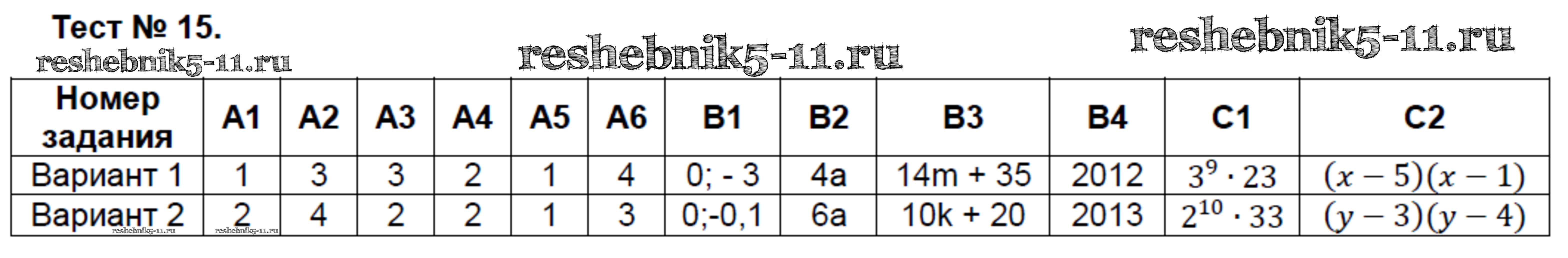 Готовая домашняя работа с ответами по Алгебре за 7 класс Мартышова Контрольно-измерительные материалы (КИМ) ВАКО 2017 ФГОС - Тесты 15
