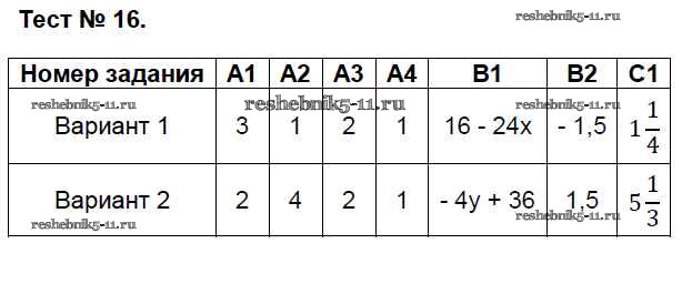 Готовая домашняя работа с ответами по Алгебре за 7 класс Мартышова Контрольно-измерительные материалы (КИМ) ВАКО 2017 ФГОС - Тесты 16