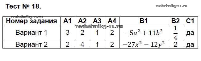 Готовая домашняя работа с ответами по Алгебре за 7 класс Мартышова Контрольно-измерительные материалы (КИМ) ВАКО 2017 ФГОС - Тесты 18