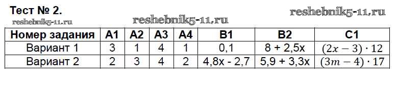 Готовая домашняя работа с ответами по Алгебре за 7 класс Мартышова Контрольно-измерительные материалы (КИМ) ВАКО 2017 ФГОС - Тесты 2